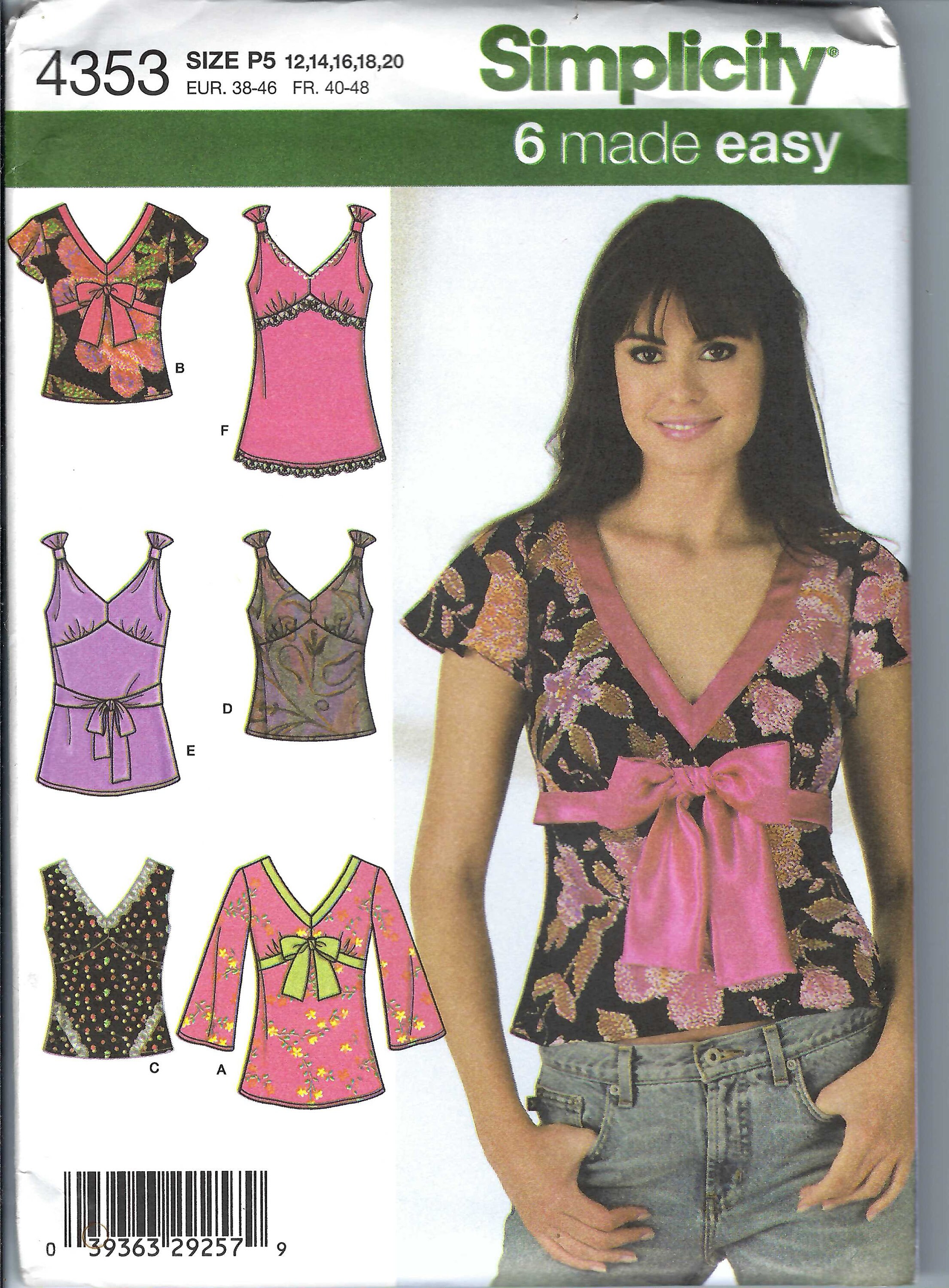 Uncut Simplicity Sewing Pattern 4353 V Neck Top High Shaped Etsy